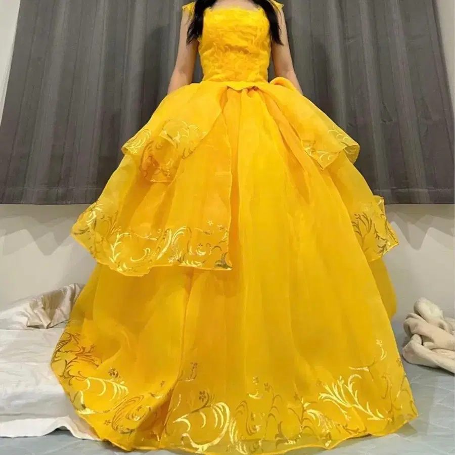 미녀와 야수 벨 코스프레 디즈니 드레스 옐로우 컬러 드레스