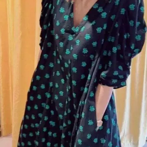 누키테파 코튼 도비 스트라이프 플라워 프린트 드레스 원피스