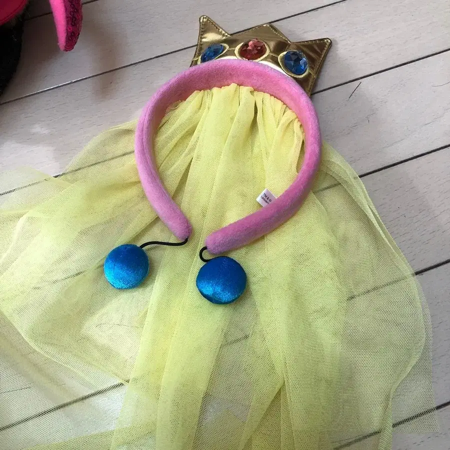 왕관 머리띠 옐로우 컬러 베일 부착 피치 공주 마리오