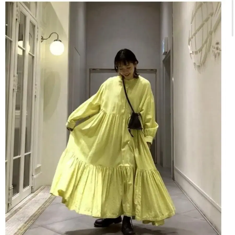 BLACK CRANE 개더 맥시 원피스 옐로우 컬러