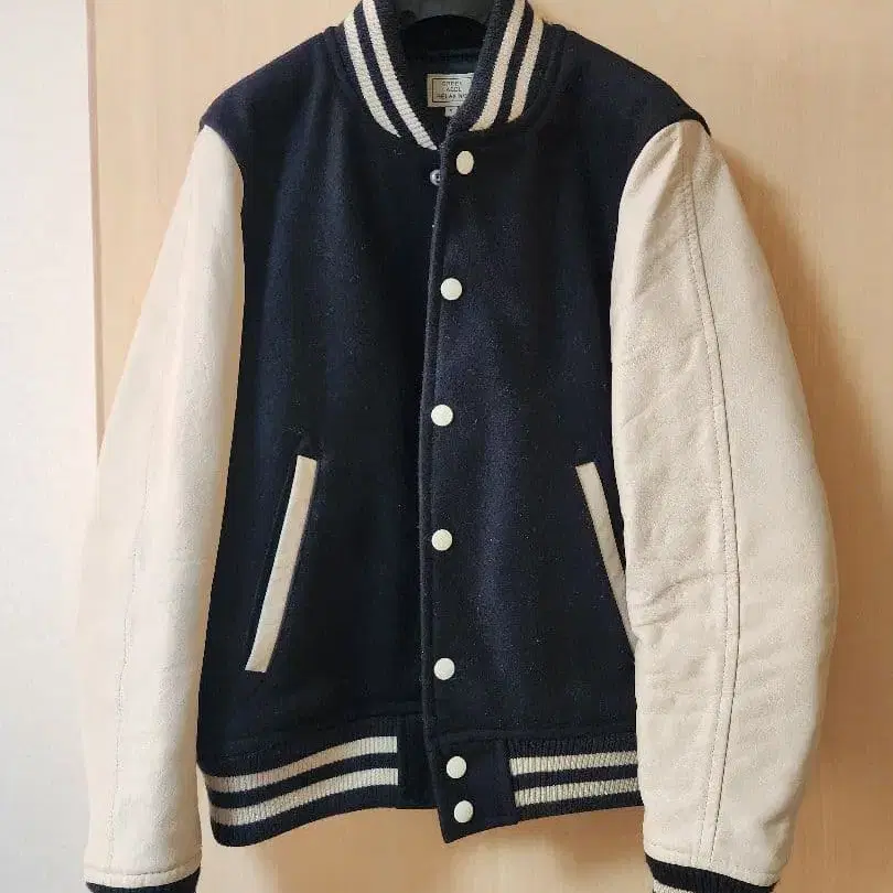 자동 번역되었어요. 원문보기네이비와 아이보리 색상의 바시티 자켓, 사이즈 S, 캐주얼에 최적입니다.