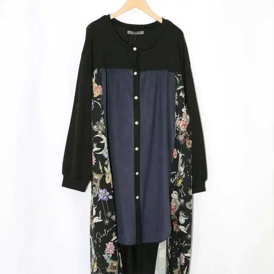 이즈스칼라 553286: 앤티크 패턴 3소재 절개 롱 가디건