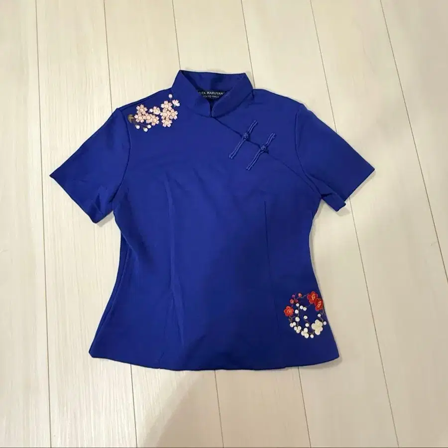KEITA MARUYAMA 파란색 자수 반팔 셔츠