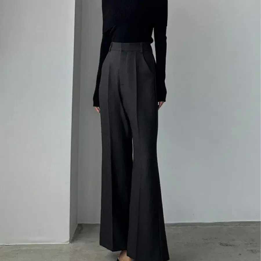[ 새상품 미사용 ] Louere 백 슬릿 플레어 팬츠 (다크 그레이)