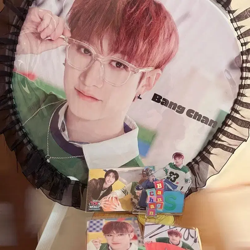 straykids 방찬 부채, 아크릴 스탠드, 트레이딩 카드 씰 세트