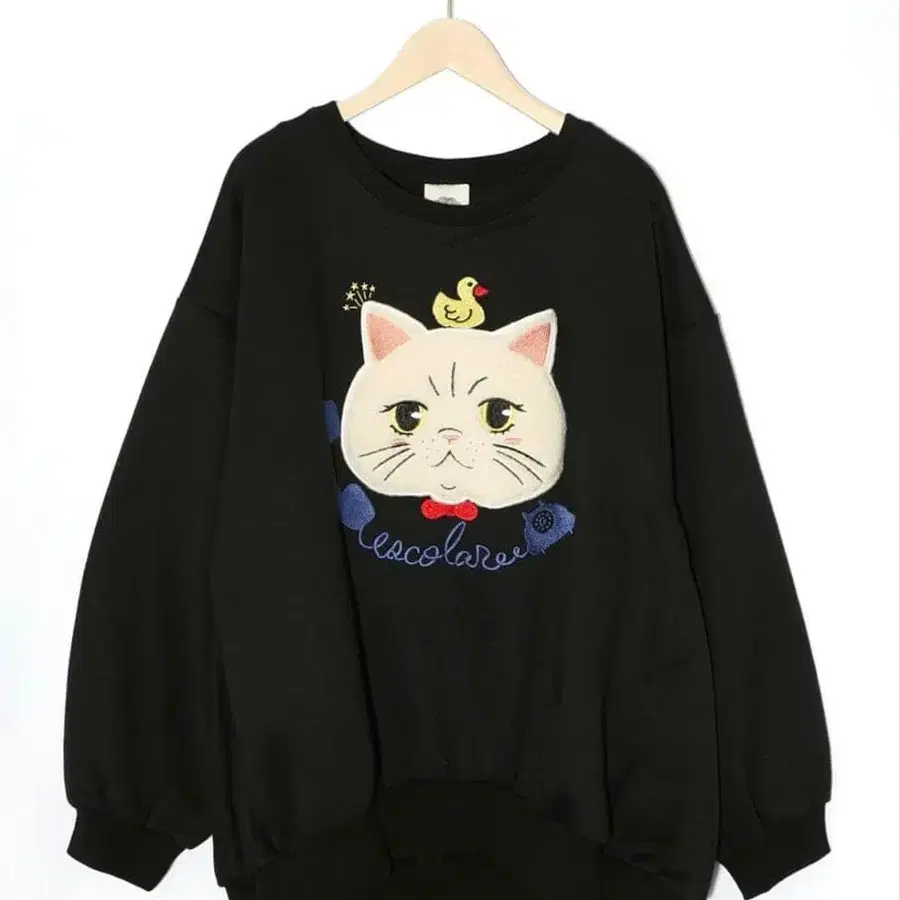 스칼라 153768: 고양이 보아 아플리케 x 자수 속기모 풀오버