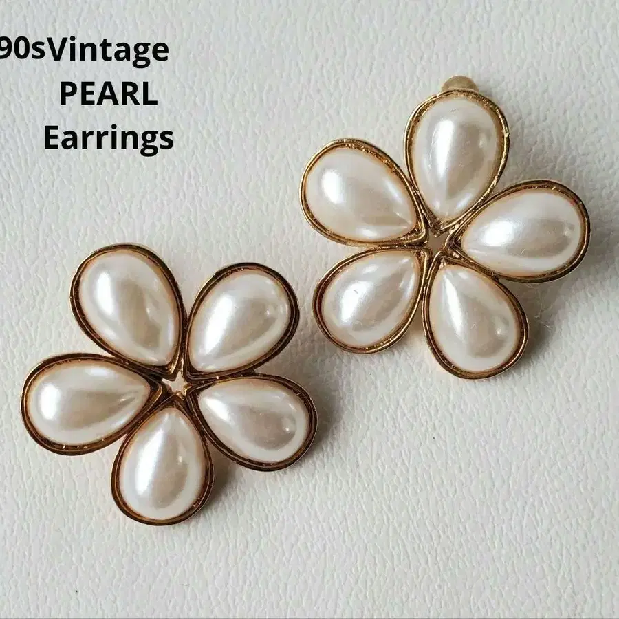 90s 빈티지 빈티지 펄 플라워 귀찌 주얼리