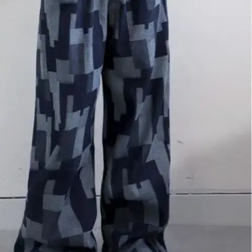 antiqua 와이드 팬츠 다크 블루 그레이 기하학 패턴