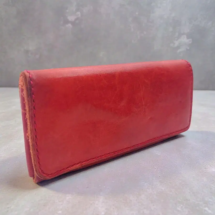 RUCK 이단 접이식 지갑 장지갑 빨간색 롱 지갑 천연 가죽 잡화 레어템