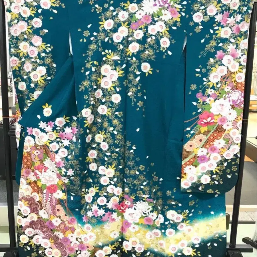 그린 계열 바탕에 귀여운 꽃이 그려져 있습니다.