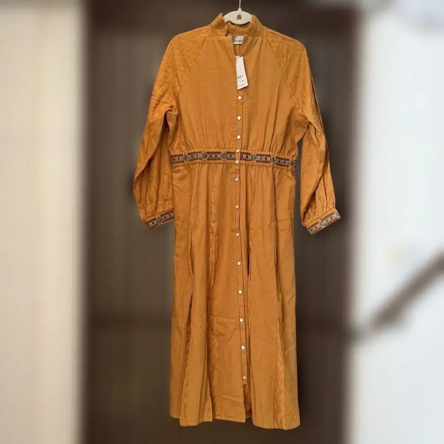 MALAIKA 오렌지 컬러 자수입 긴팔 셔츠 원피스