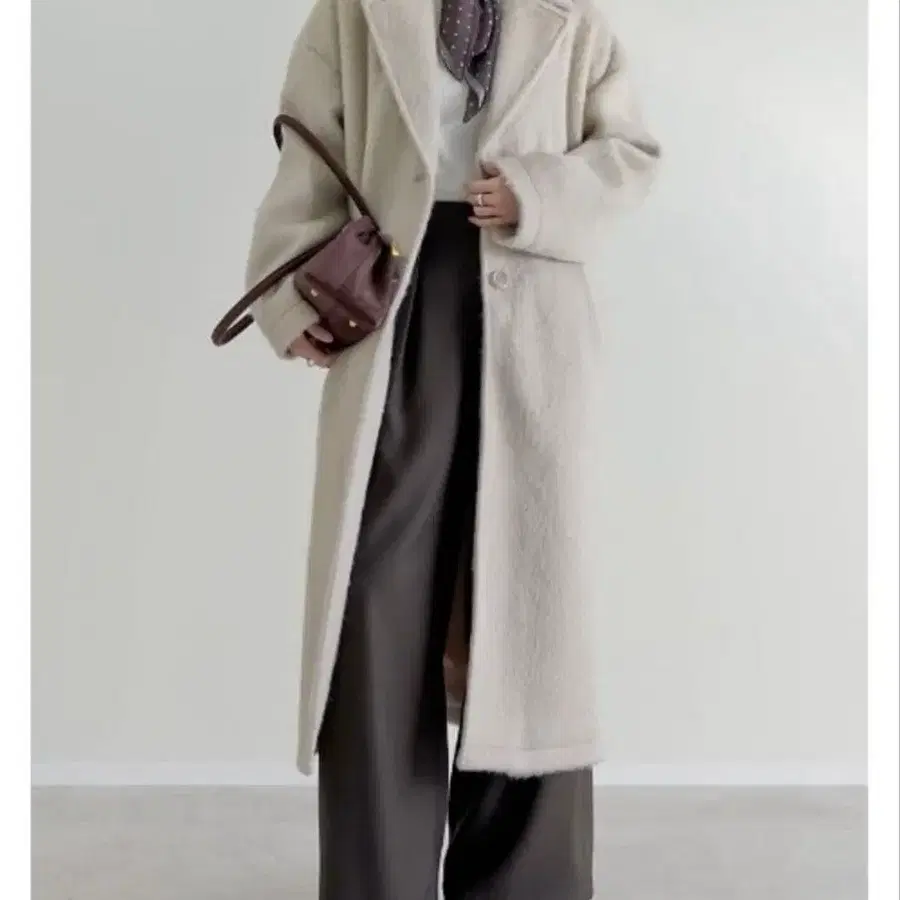 • [ ebure ] 정가 16.5만 수리 알파카 샤기 코트 노카라 그레이