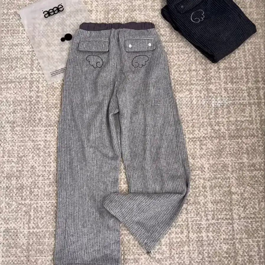aeae 날개 모티브 자수 스트라이프 팬츠