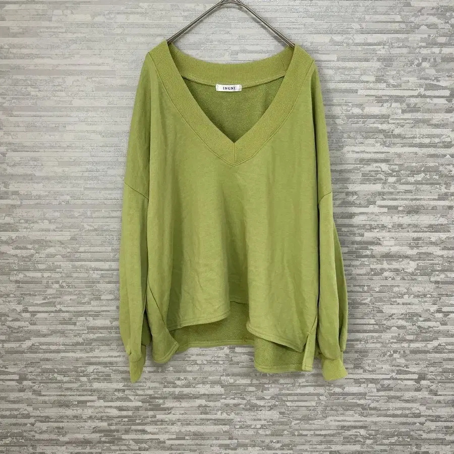 INGNI의 여유로운 실루엣에 깊은 V넥이 여성스러운 인상을 주는 맨투맨 풀오버.