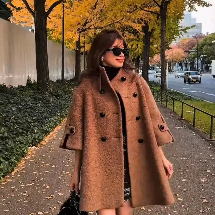 셰리에 클래시컬 케이프 라이크 코트 카멜