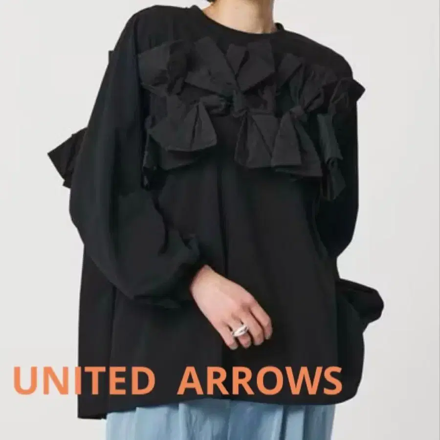 해당 상품은 UNITED ARROWS 리본 콤비 퍼프 슬리브 티셔츠 - 워셔블 - 입니다.
