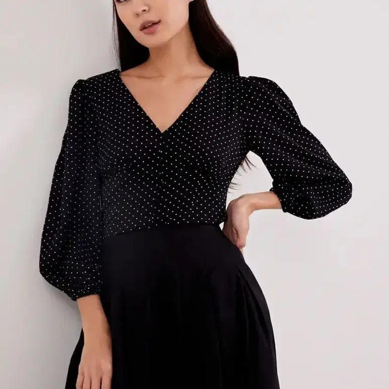 Love, Bonito 블랙 도트 무늬 벌룬 소매 블라우스 XS