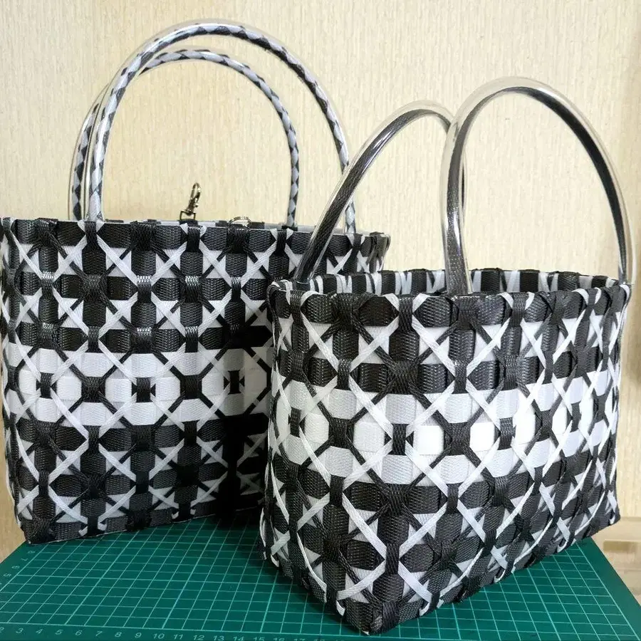 pp밴드 기하학 패턴 바스켓백 2개 세트