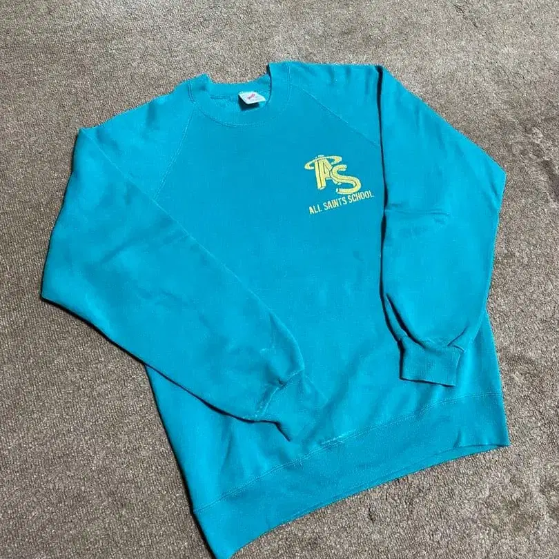 90s Jerzees 맨투맨 | USA 제조 | 터콰이즈