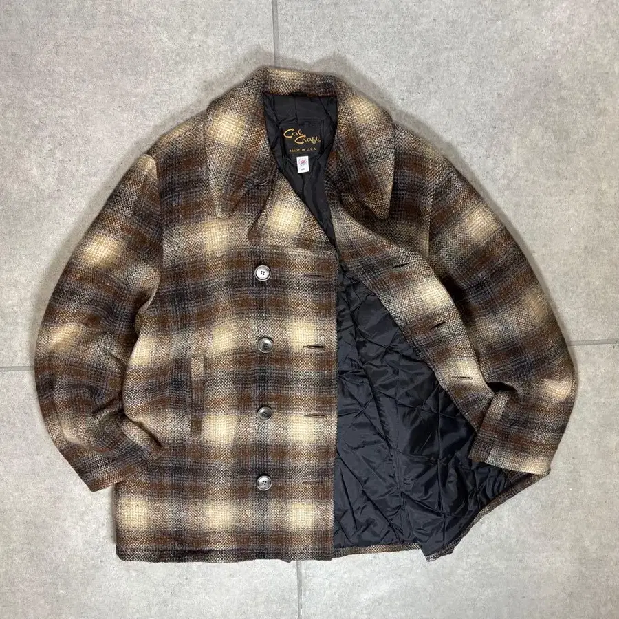 Cal Craft 피코트 USA제 90s 옴브레 체크 퀼팅