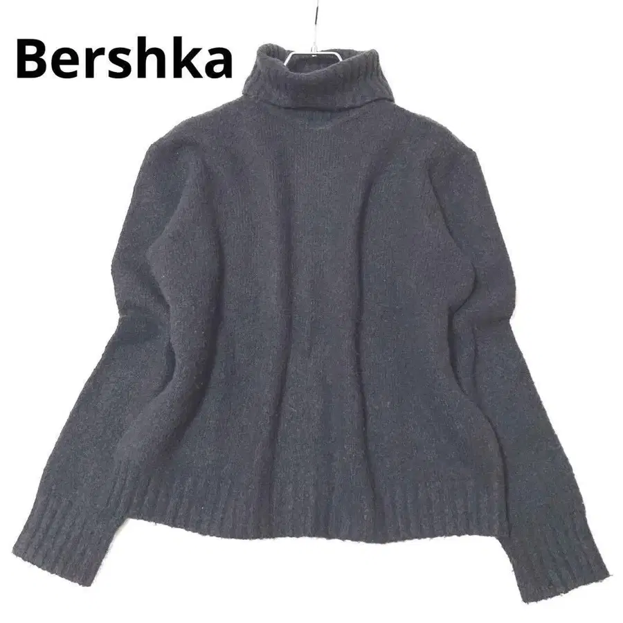 버쉬카 긴팔 니트 풀오버 터틀넥 무지 심플 블랙