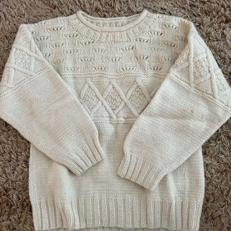 손뜨개질 아이보리 케이블 니트 스웨터 M 사이즈 상당