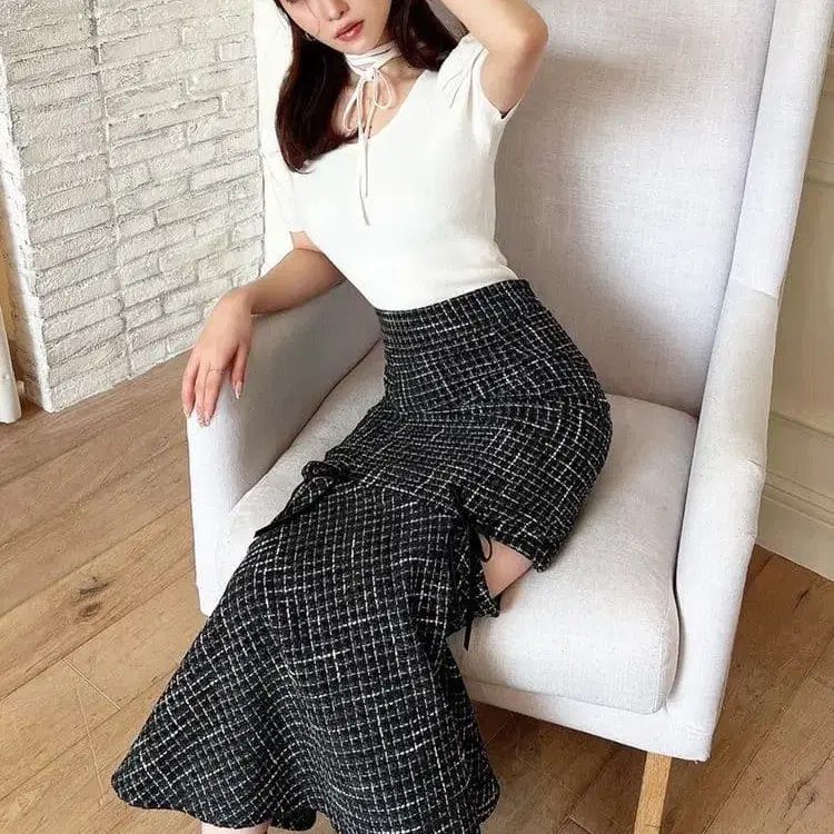 RESEXXY 컷 아웃 트위드 머메이드 스커트 미사용 새상품