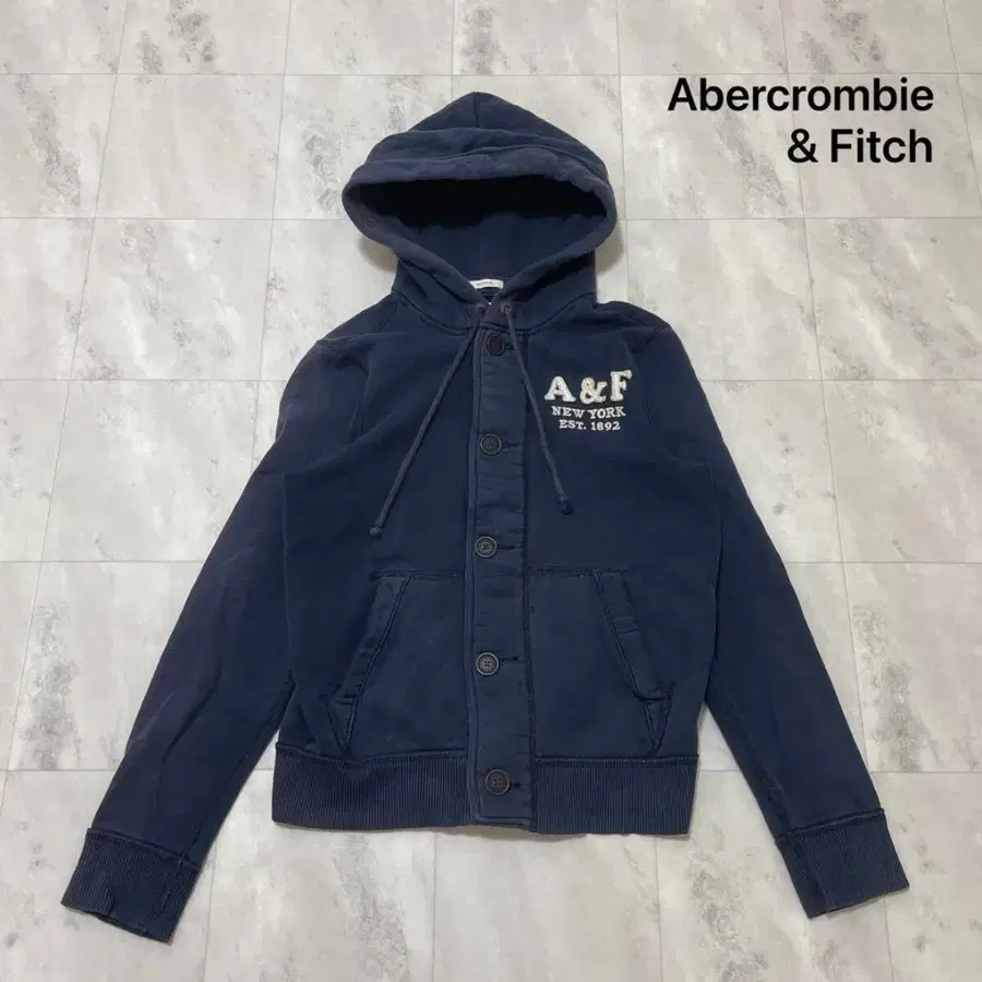 Abercrombie&Fitch 아바클로 버튼 후드티 SWEAT HOODIE 맨투맨 후드티 긴팔 자수 로고 아메카지 스트릿 USA 기획 네이비 사이즈 L玉bk1059