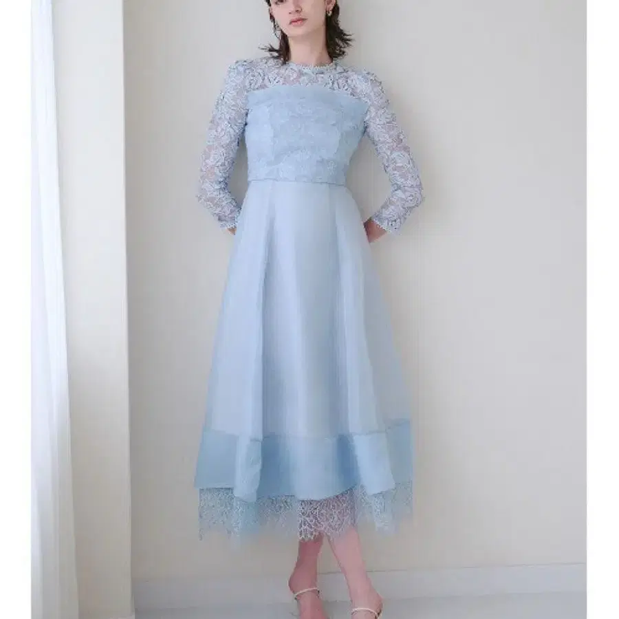새상품 SNIDEL 볼륨 플레어 레이스 도킹 드레스 블루 원피스