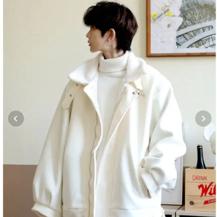스트릿 느낌의 시선을 사로잡는 빅 실루엣 디자인으로 최신 유행 코디와 존재감을 발휘하는 스탠드 자켓.