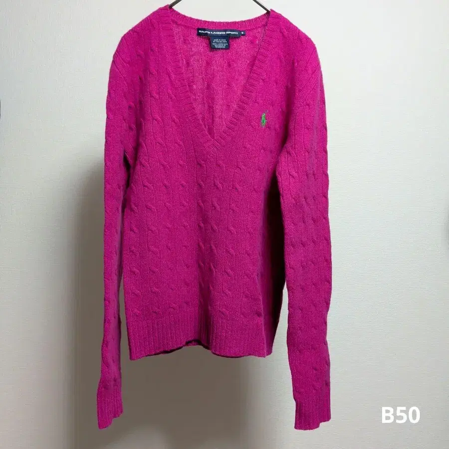랄프 로렌 스포츠 V넥 퍼플 케이블 니트 램스울 M