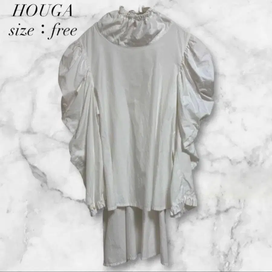 새상품급 HOUGA MOE ISHIDA 프릴 슬리브 블라우스 화이트 펄