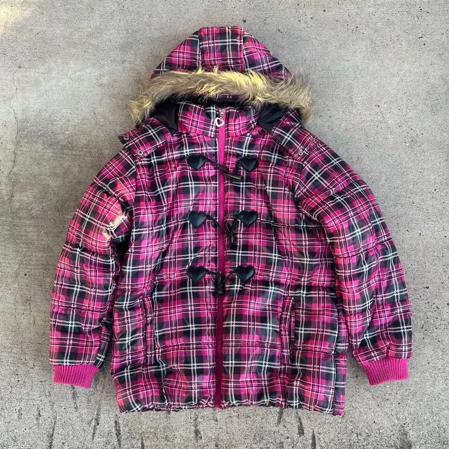 00s archive y2k 퍼 체크 다운 핑크 헤이세이 그런지