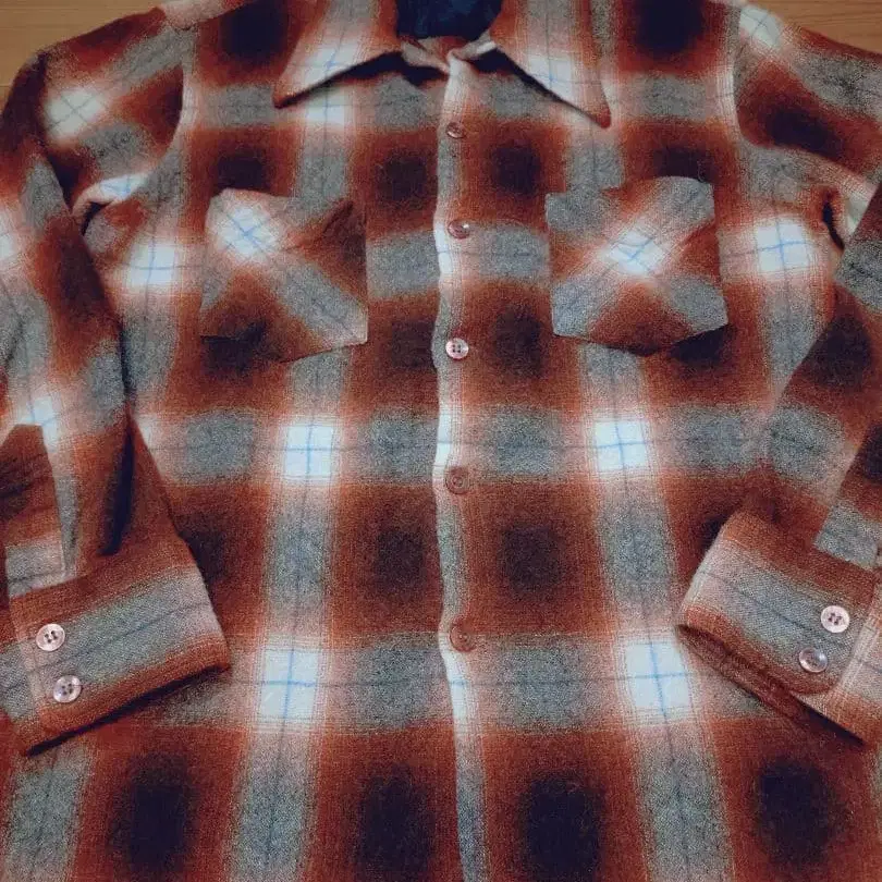70s 시어스 옴브레 체크 울 셔츠 보드 셔츠