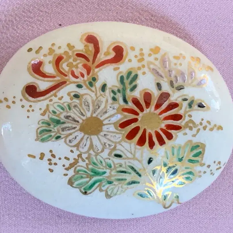 사쓰마 도기 꽃무늬 오비 고정 띠 나무 상자 포함