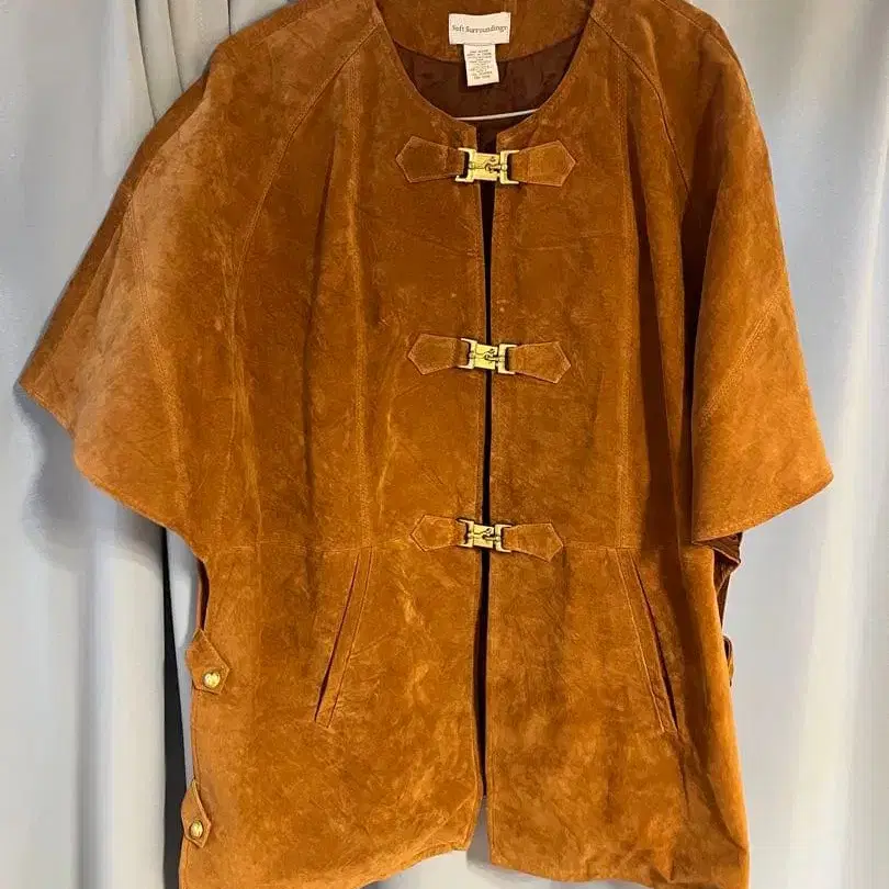 Soft Surroundings 스웨이드 가죽 케이프 자켓 판초