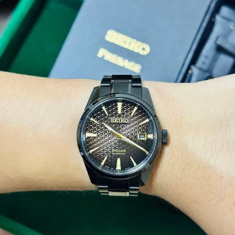SEIKO Presage 자동 와인딩 블랙 손목시계