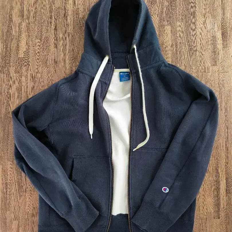[ L ] Champion 네이비 하이 지퍼 후드티 방풍 타입