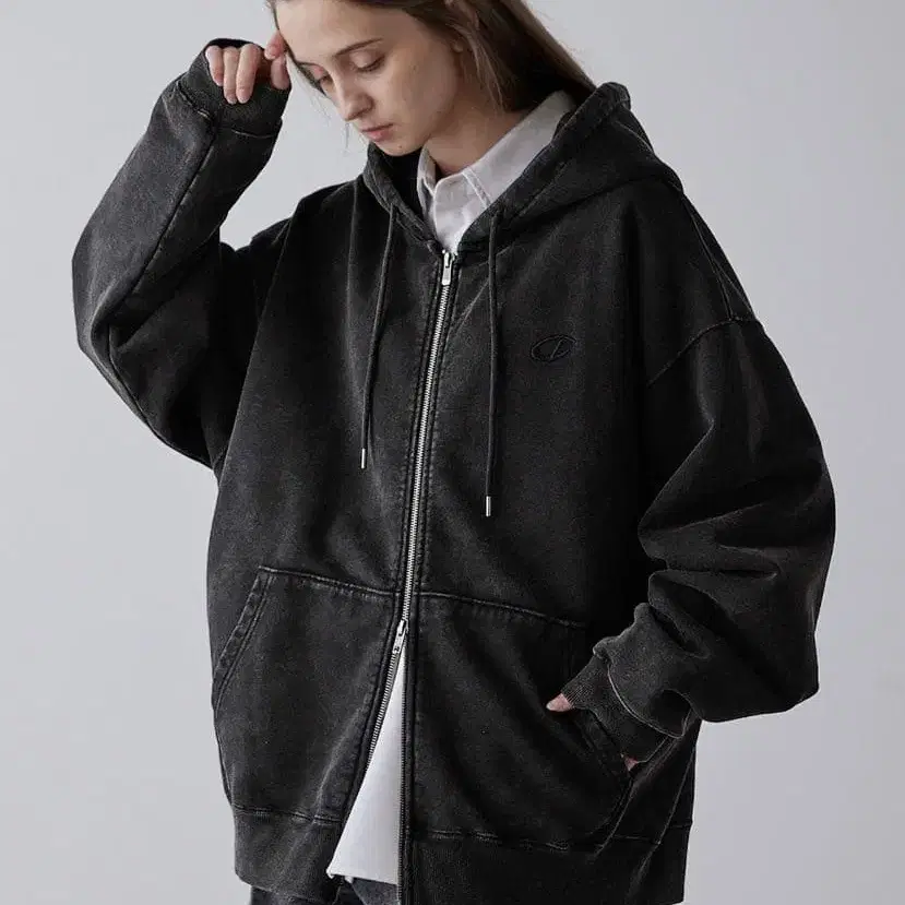 CLEL 헤비 웨이트 로고 자수 풀 집업 후드티