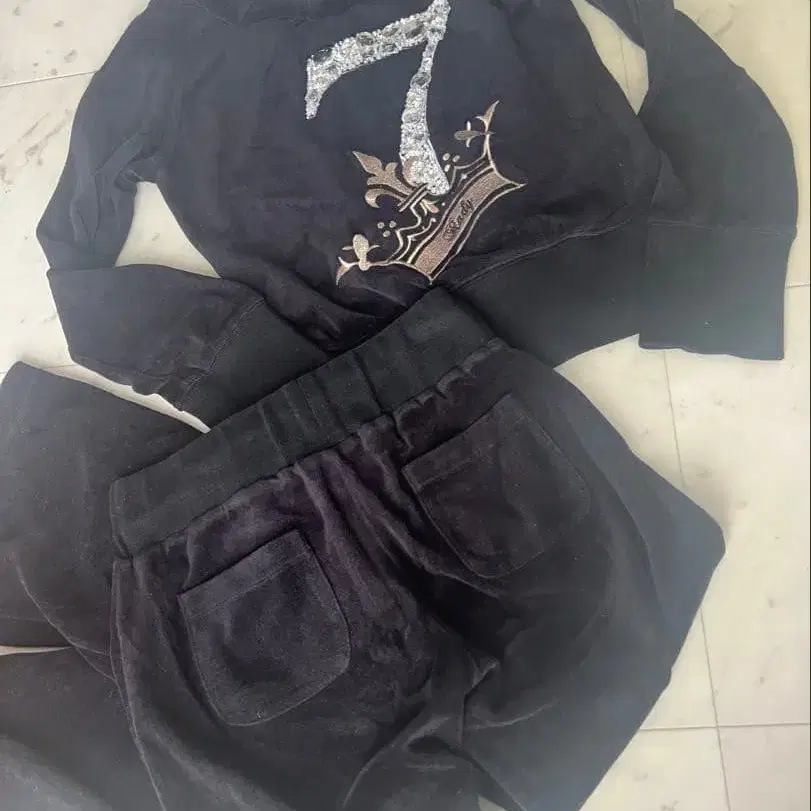 Rady 비쥬 스터드 스팽글 후드 맨투맨 & 팬츠 셋업 블랙