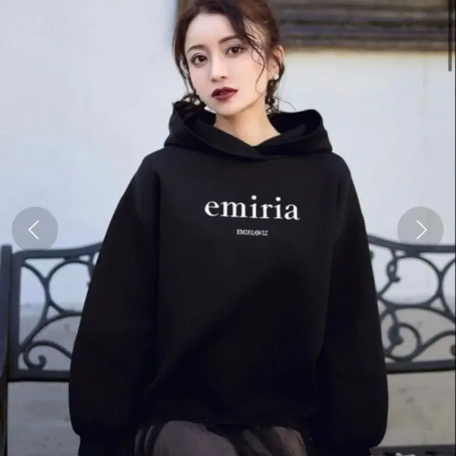 에미리아위즈 밀도 높은 로고 니트 후디 후드티 블랙