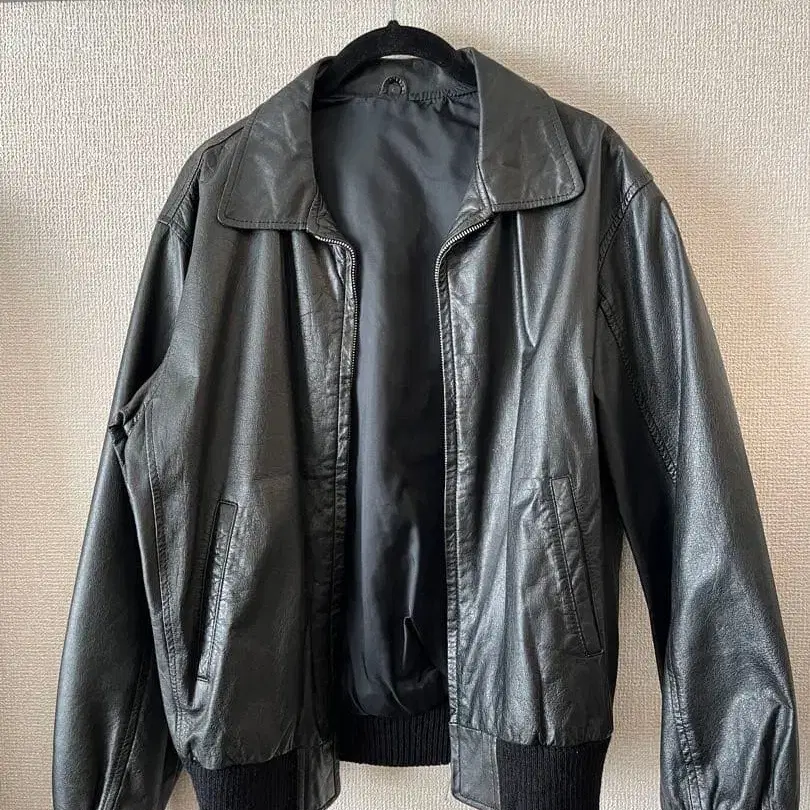 블랙 레더 봄버 자켓
