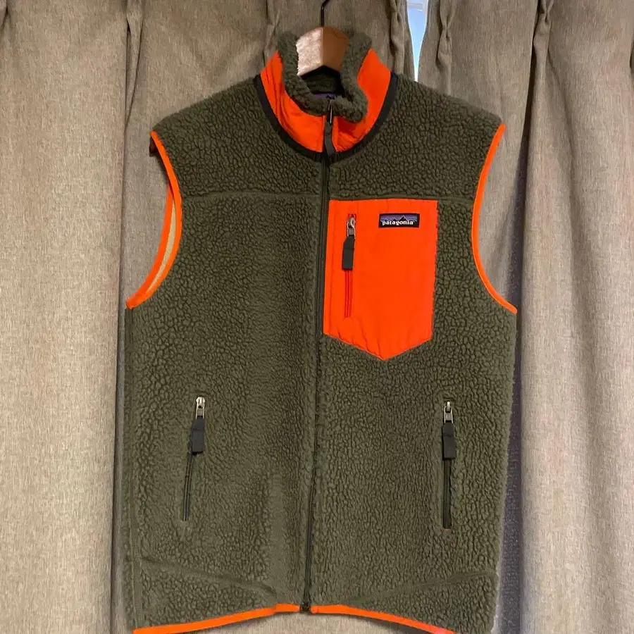 patagonia 플리스 베스트 올리브 그린/오렌지