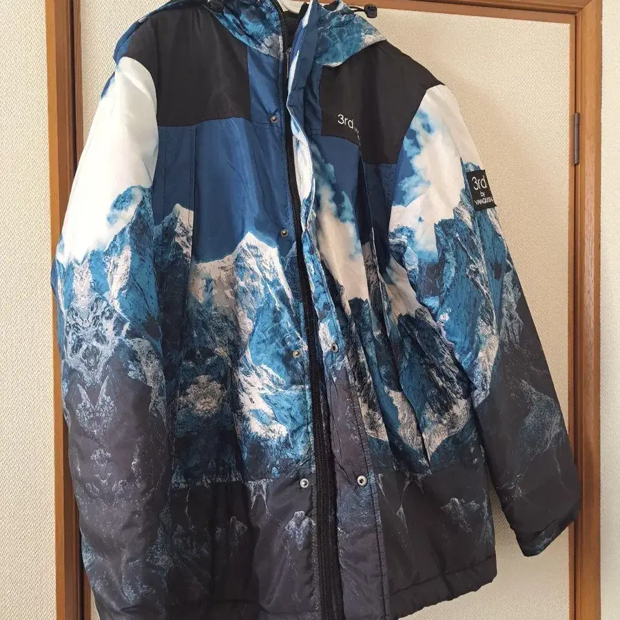 산 풍경 프린트가 특징인 후드 부착 다운 자켓. - 브랜드: 3rd by VANQUISH - 사이즈: L - 디자인: 산 풍경 프린트 - 색상: 파랑/화이트/블랙 - 스타일: 후드 부착 방문해 주셔서 감사합니다.