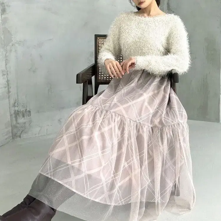 RESEXXY 시어 체크 글리터 플레어 스커트 미사용 새상품