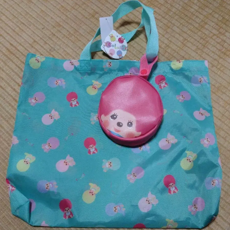monchhichi 캐릭터 패턴 토트백 파우치 포함