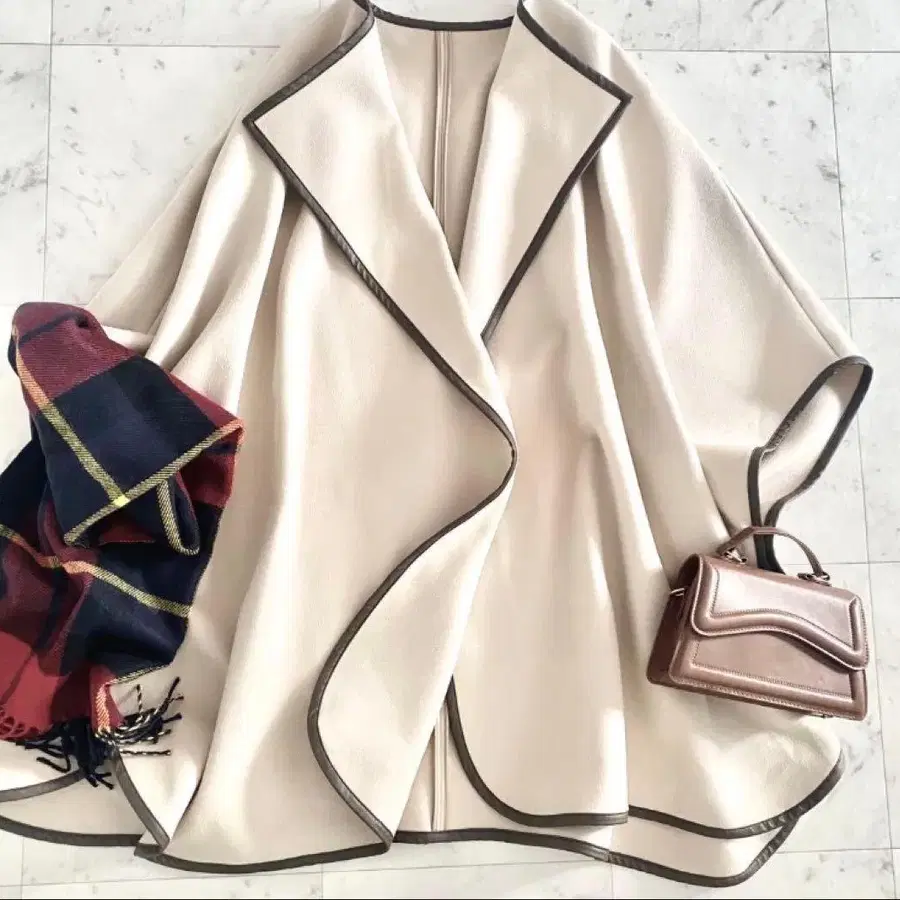 미사용 플라주 plage 판초 코트 케이프 파이핑 베이지 계열