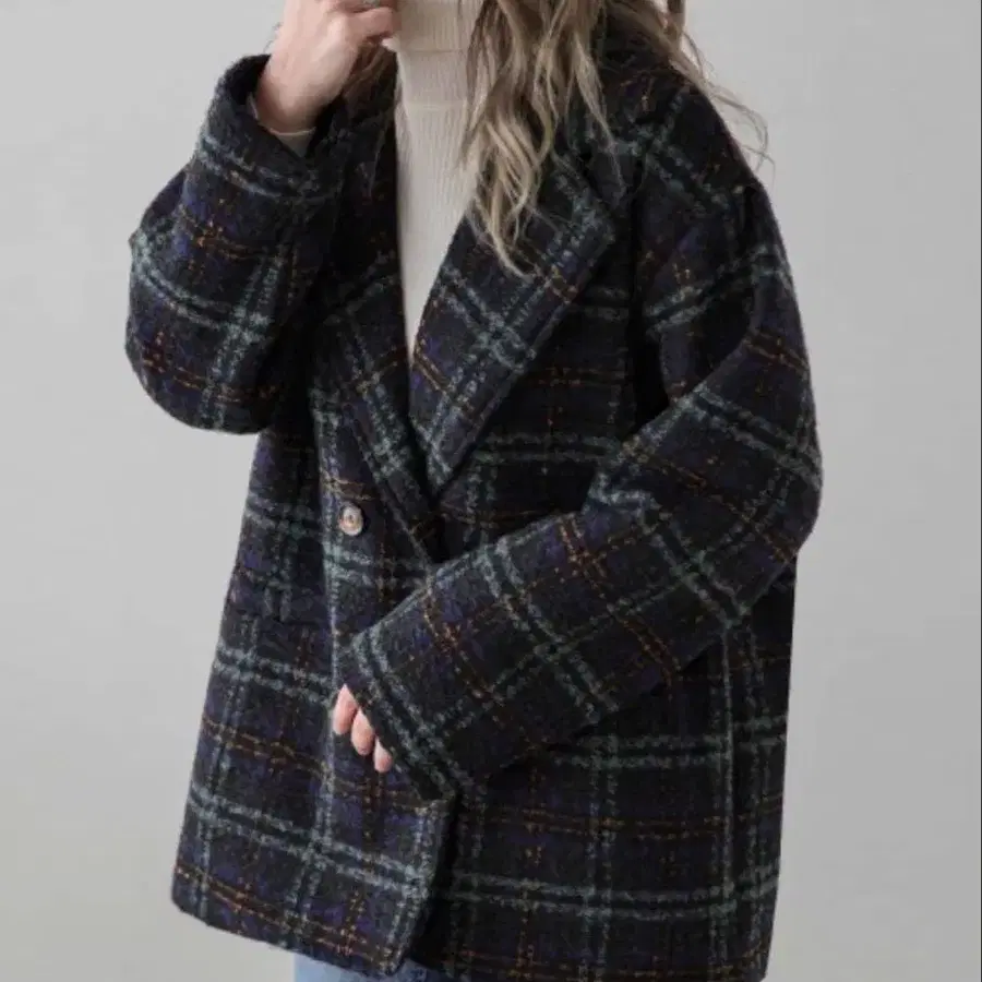 [새상품급] 네이비 계열 체크 무늬 더블 브레스트 자켓