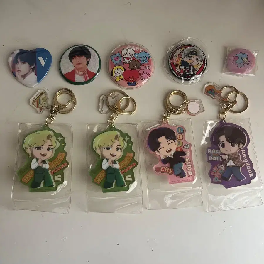 BTS 캐릭터 굿즈 묶음 판매 캔뱃지 아크링 키링 키링