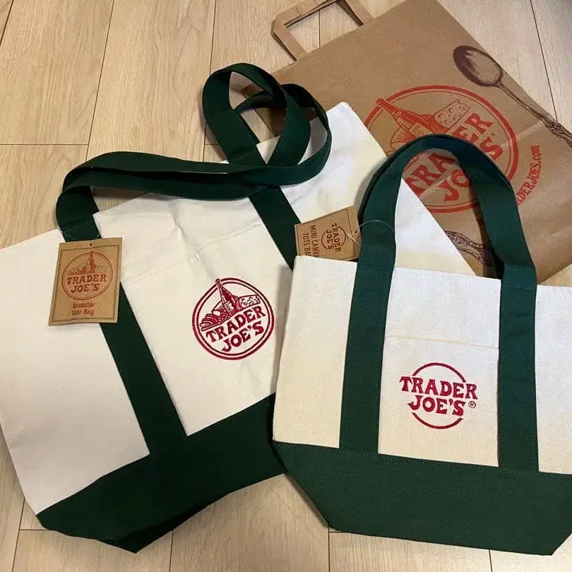 TRADER JOE'S 토트백 대소 세트 *그린* 쇼핑백 포함